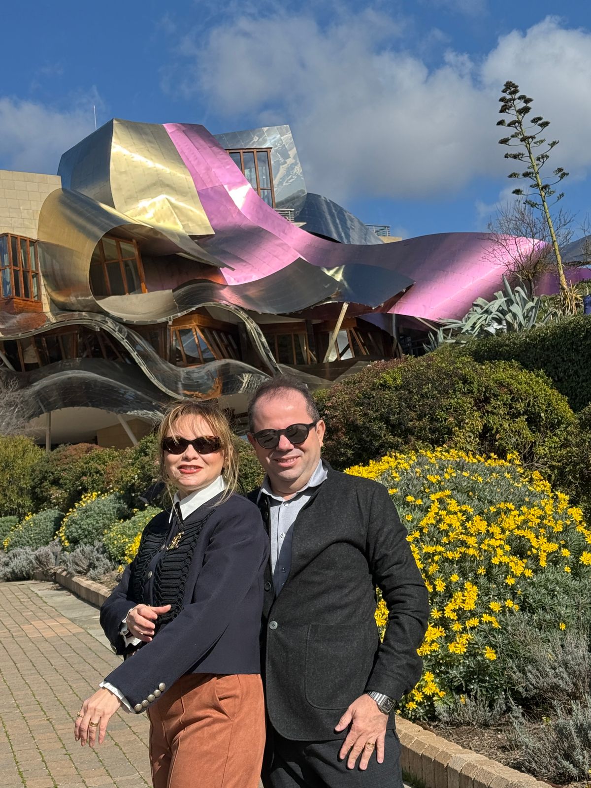 Os empresários Reginaldo Rocha ( à frente da Multipla Incorporaçōes) e Ivina Rocha escolheram um cenário digno de cartão-postal para celebrar o aniversário dele: La Rioja, na Espanha.Entre amigos e brindes especiais, o casal viveu dias de apreciação na icônica vinícola Marqués de Riscal, um dos endereços mais emblemáticos da região.O destaque, claro, ficou por conta da arquitetura arrojada assinada pelo arquiteto canadense-americano Frank Gehry, que transformou o local em um verdadeiro espetáculo visual, combinando arte, vinho e paisagens únicas.